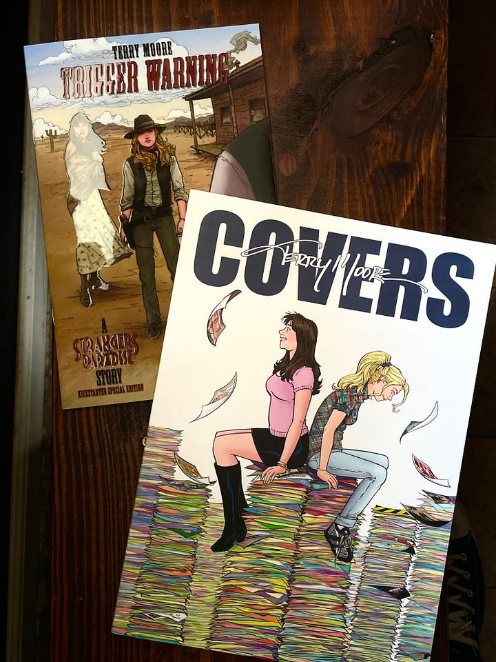 A couple things have arrived in the mail this week that's making me super happy. First up is a collected edition of all of the comic book cover artwork Terry Moore's ever done (of his personal creator owned work). Becoming a fan of Terry Moore later on, I've read most of his past work in trades or omnibuses. Huge books that collect one complete story all in one place. But, a lot of times those collections forego the individual comic book cover art. So yeah, you've got the story, but you're often missing the covers! So, Moore has published a huge volume collecting only his cover art for every book he's self published. That's Strangers in Paradise, Rachel Rising, Motor Girl, Parker Girls and more. It's a beautiful book and was definitely a highlight of the week. Not only that, but he wrote and drew a one-shot exclusive comic for Kickstarter backers only. I'm pretty sure all of these will be available for retail as well so if you're interested, be sure to tell your local comic book shop.