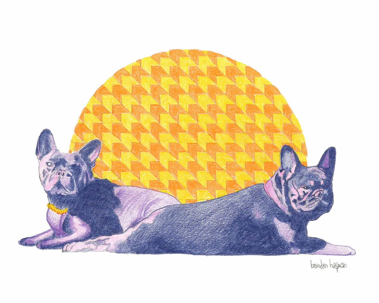 Sorry about that guy up there. He’s tired. He just wants to make comics and hates the business side of pretty much everything. Let’s look at pretty pictures for a minute, huh? Below is the latest pet portrait I did of Bruno and Izzy.